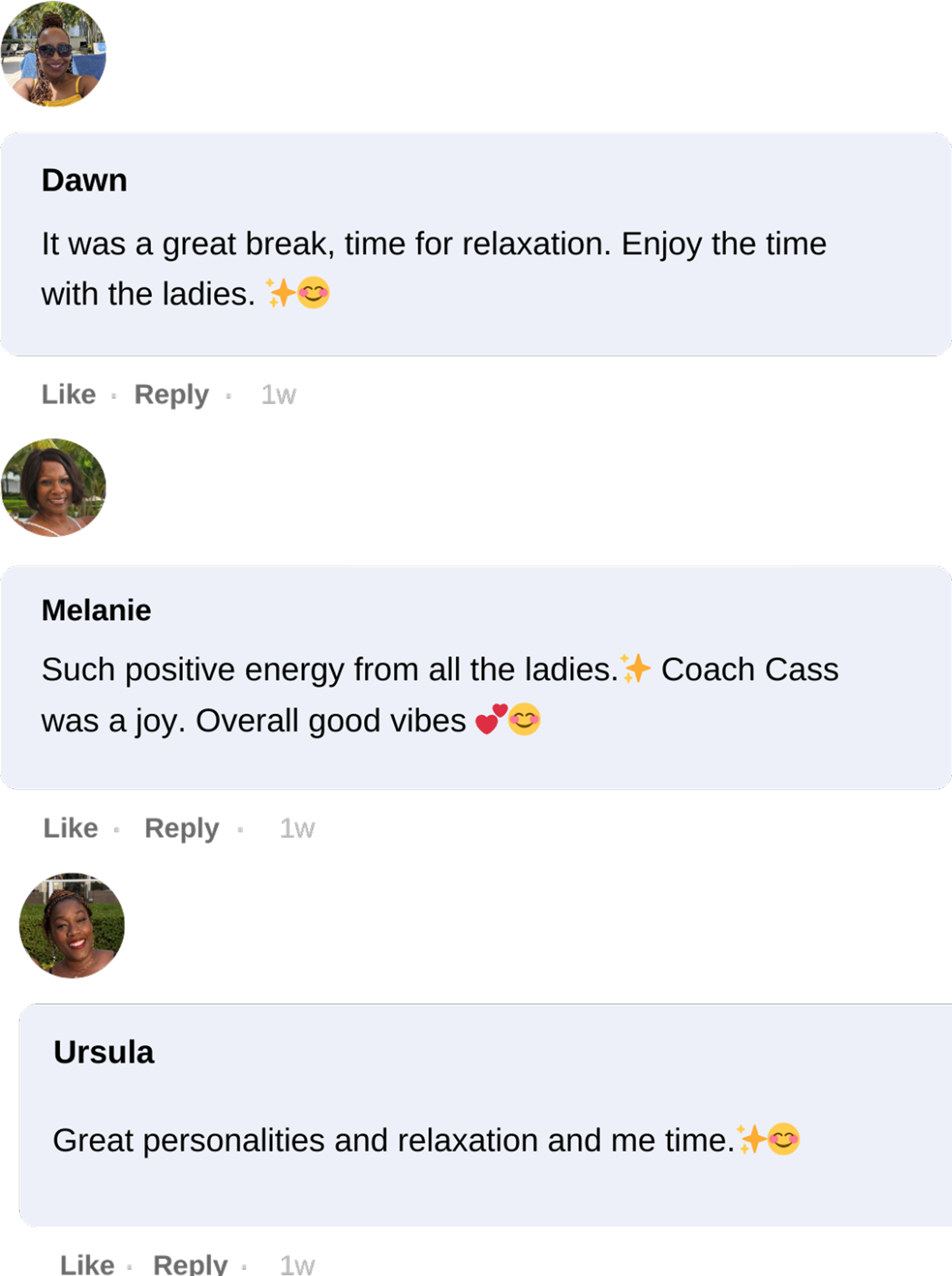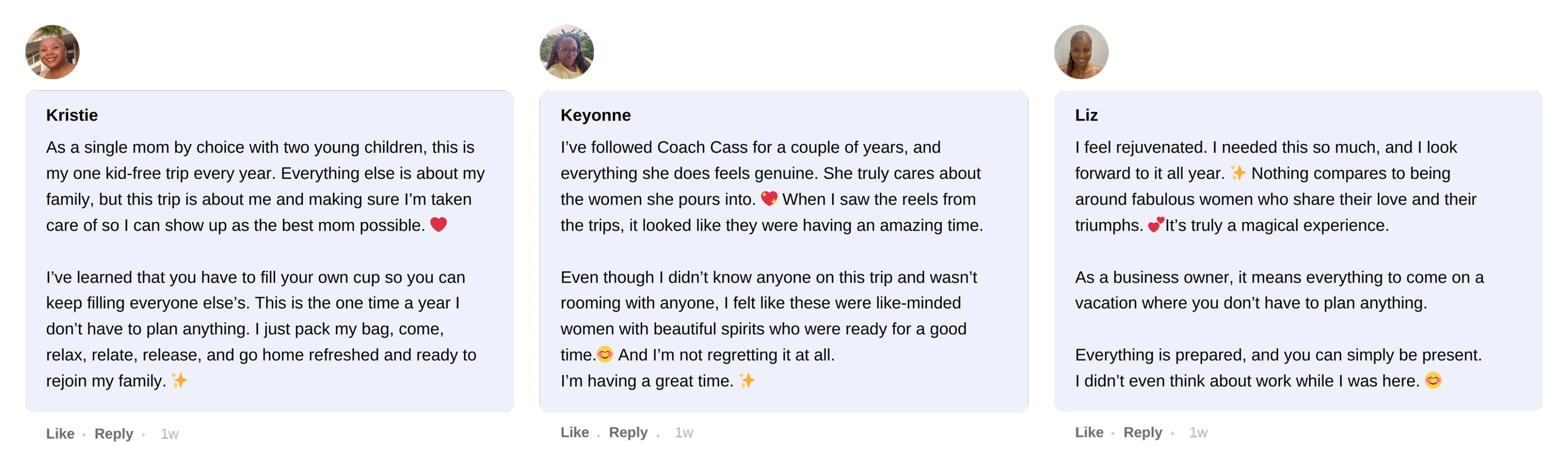 I have been to so many events like this before, but none like this. I've traveled the world and never have I ever felt as relaxed. Sharing things with women that I haven't shared with friends i've known from childhood. Coach Cass creates a safe space. That I love.