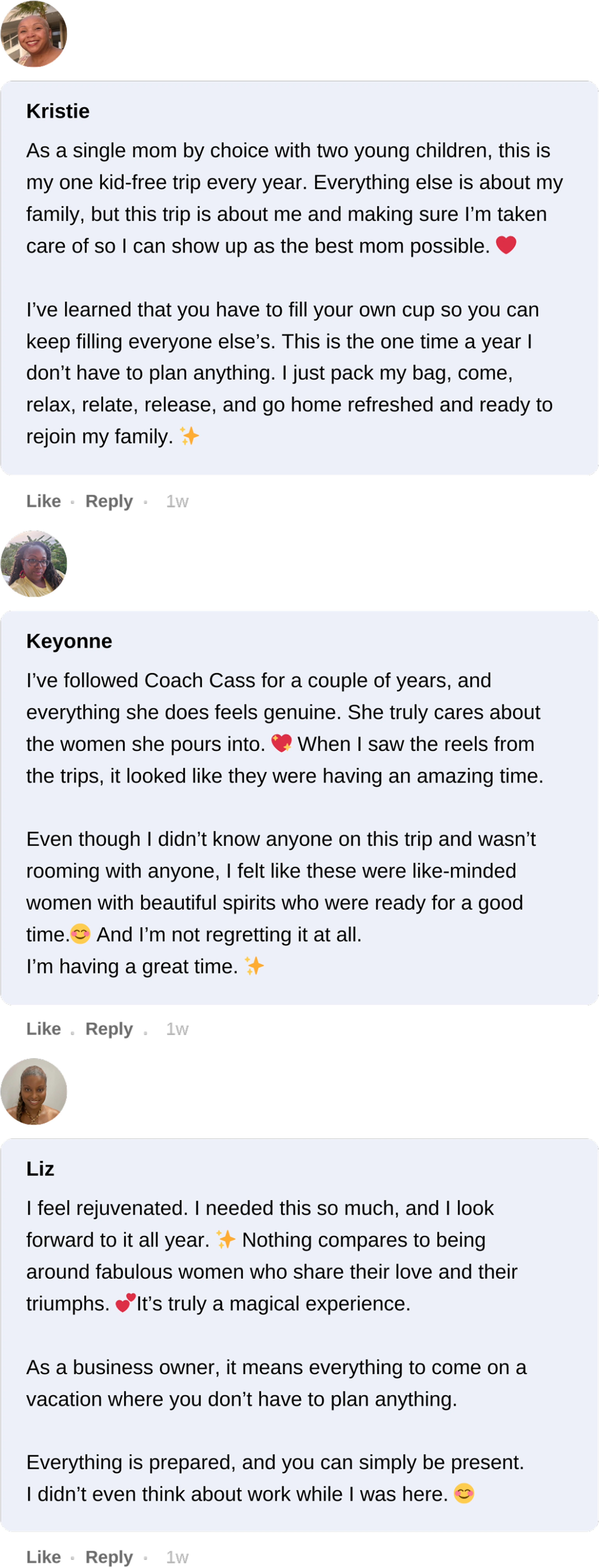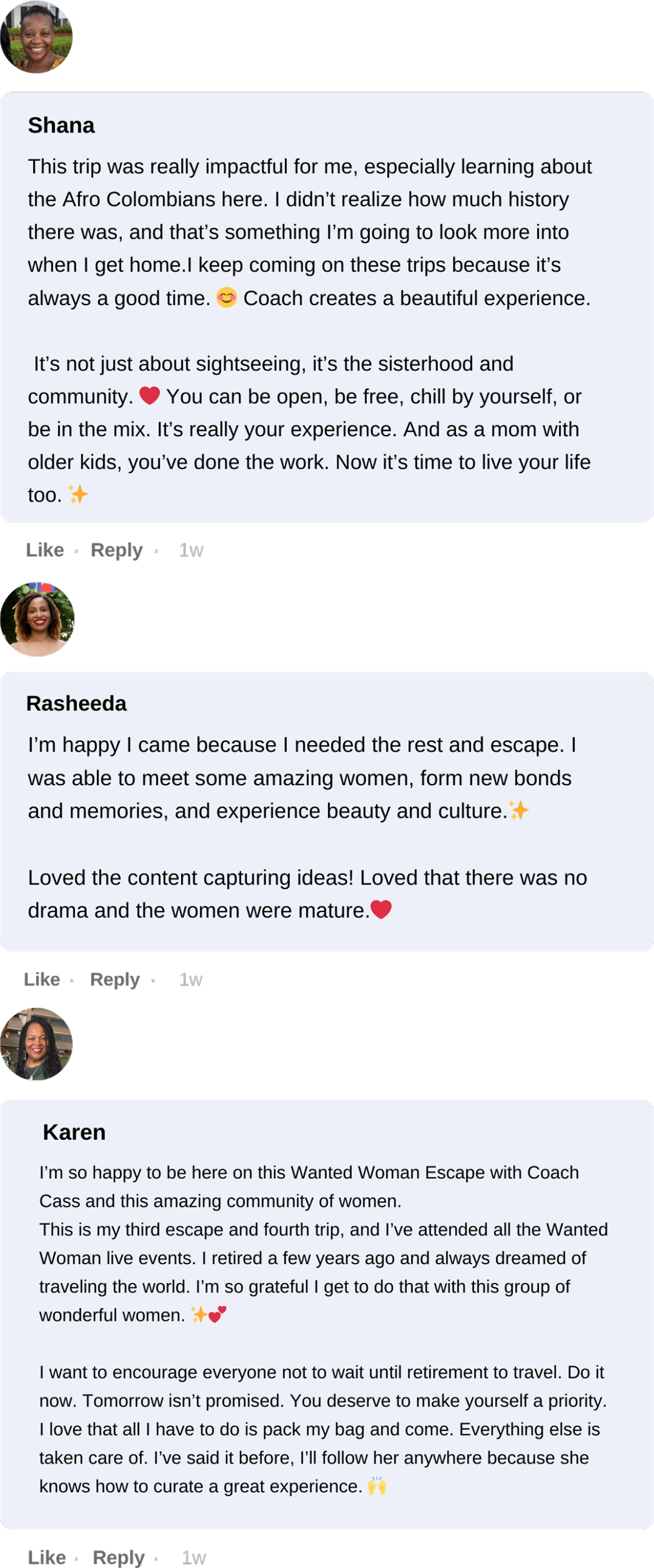 We understand this is an investment. And if you are anything like the women who join us, you do not spend your time or money lightly. This is not just a trip. This is what happens when you finally choose yourself without apology. It is the space where you step away from your responsibilities, your roles, and the pressure to always have it together… and reconnect with the woman underneath it all. The conversations, the laughter, the breakthroughs, the connections these are the moments that stay with you long after you return home. Many of our guests come for the experience and leave with clarity, confidence, and relationships that continue far beyond the trip. You can take another vacation or you can have an experience that actually pours back into you. Only you know which one you are ready for